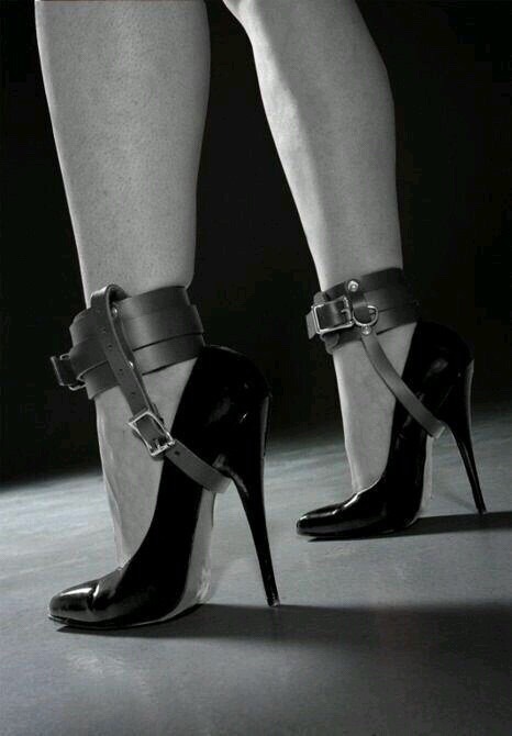 The high heels will enhance her sensual legs, and the leashes around her ankles will avoid any kind of possible escape !