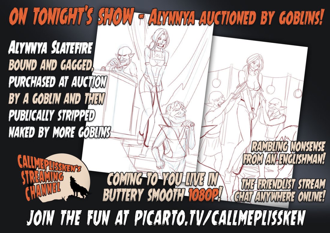 Tonight, for your viewing enjoyment and now in glorious 1080p HD goodness I’ll be drawing two follow-up pictures to http://callmeplissken.tumblr.com/post/177452144355/ahmt-113-aly-on-the-auction-block-hd-version