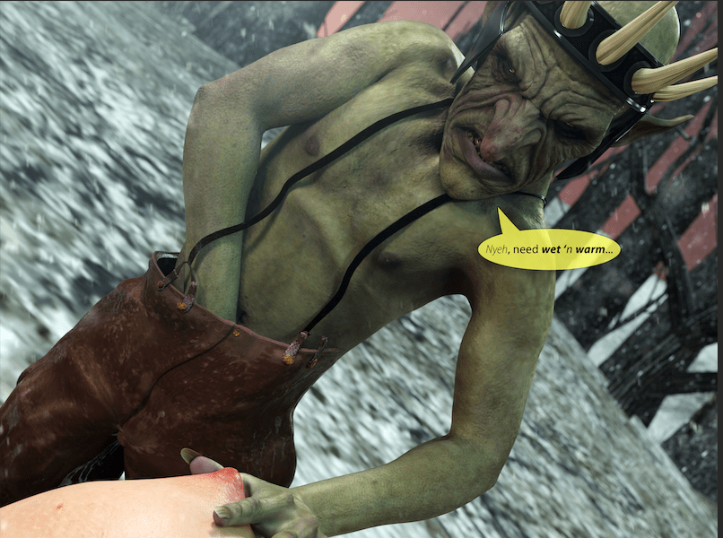 My attention strayed back to the snotling squad leader. His groans were coming louder as he stroked himself faster. It seemed eventually he was going to either cum in his pants, or on me!