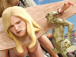 While the huge orc was still ‘enjoying’ Kara on the upper level of the pillory, the little goblin had lost his patience with Evie’s defiance.