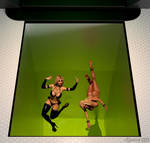 I pivoted and braced for impact as best I could, protecting my head, while the glowing green floor rushed up at us. We landed with more of a ‘splurp’ than a ‘splat,’ though…and the impact didn’t hurt at all.