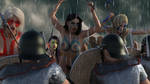 Fierce barbarian Deena fought valiantly, tearing through the Roman lines with her compatriots Sabrina, Sonia, Aura and Julia.