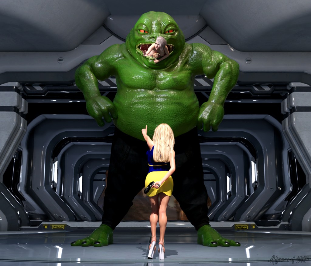 “I warned you, Chubbo! Now chew lead, you ugly toad!” Agent Katie shouted as she unleashed a torrent of pistol fire into the giant Space Toad’s chest.