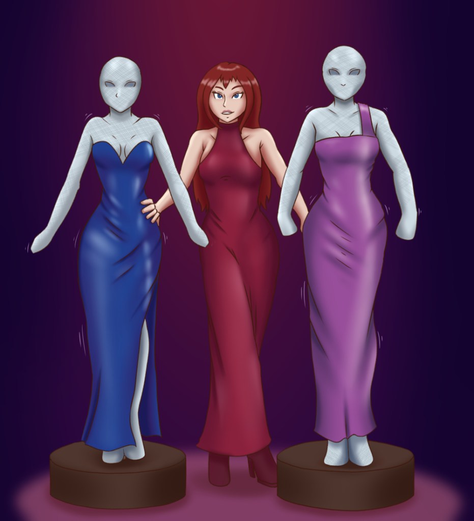 Miss Laressa Silverspun enlists her two favorite ‘flies’ to serve as living mannequins for the unveiling of her Spring Collection!