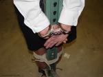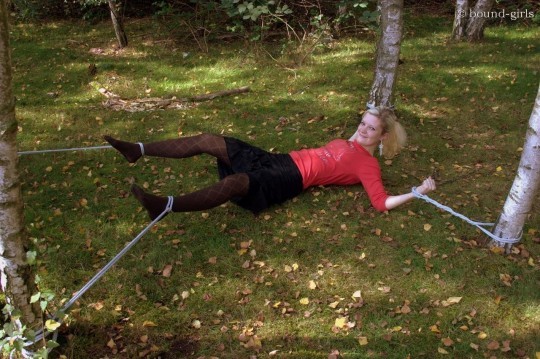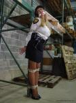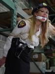 Agent Katie is overpowered, disarmed, and her own cuffs are used on her. Then she’s dragged to pallet racking in the middle of the warehouse, where the henchmen have fun applying ropes to the body parts of their choosing. Which gives her a front row seat to observe their entire operation–just as she planned.
