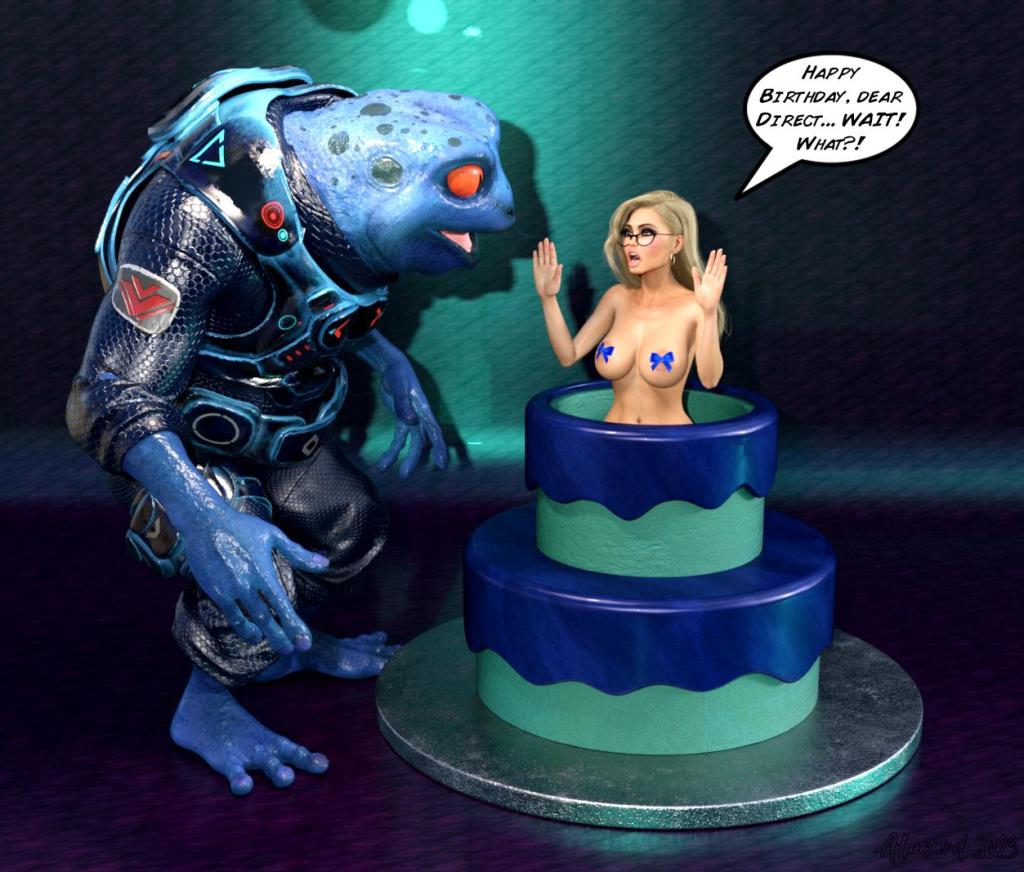 Chubbo still didn’t respond. “That’s what you want, don’t you, you disgusting perverted space toad. You want me to be totally exposed and vulnerable and humiliated before I submit to you, right?” Agent Katie tucked her thumbs into the waistband of her skirt and shrugged it down over her hips.
