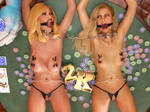 Eventually, Marv and Braggo relented and removed their appendages from the girls’ mouths. Evie and Kara lay gasping on the tabletop, only moving when Lady Eva moved on to another of their unprotected feet. They exchanged another look, this one filled with much more despair.